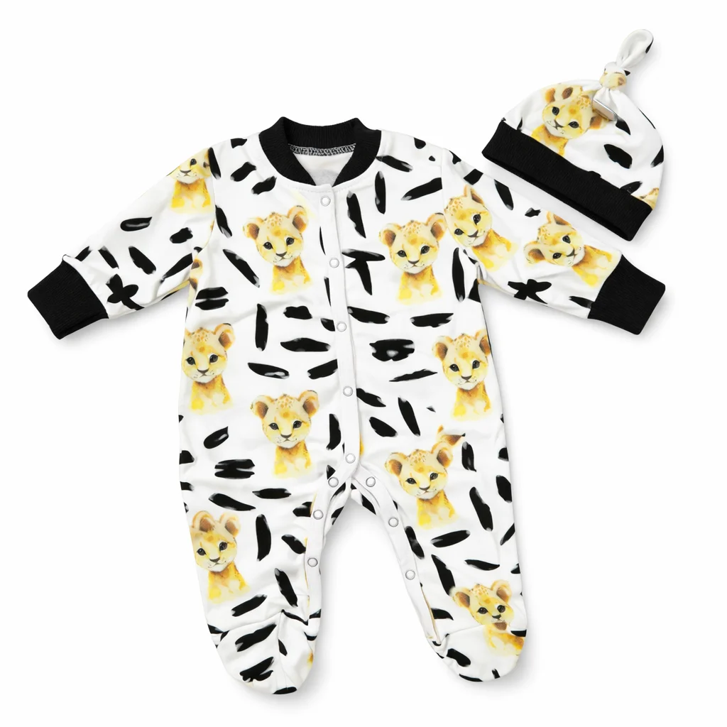Komplekti kuulub mütsike. Kaunis puuvillane komplekt (100%). Jalaosad on suletud. Käsitöö. Valmistatud Prantsusmaal.